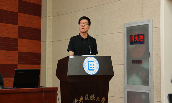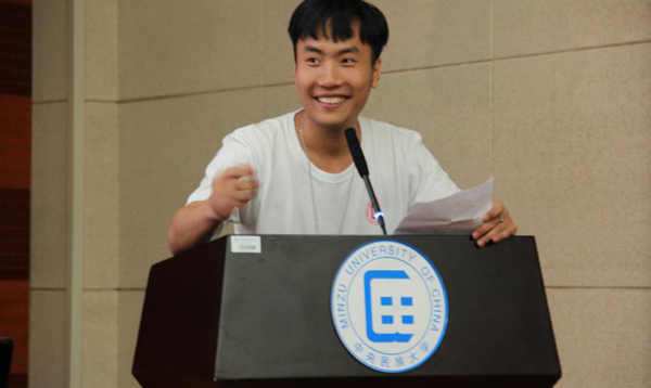其后,教师代表张海威老师发表了讲话。他首先分享了自己的求学和工作经历,叮嘱新生要珍惜在校时光,努力学习;然后向各级新生介绍了汉语国际教育专业的培养方案和目标,并着重解读民大二人麻将