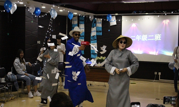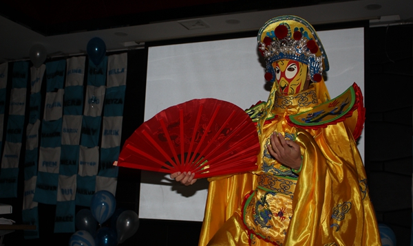在本次晚会正式开始之前,来自本科四年级一班的泰国学生赵健博为我们带来了《川剧变脸魔术》,他的变脸使在场师生赞叹不已,并赢得了所有人热烈的掌声。