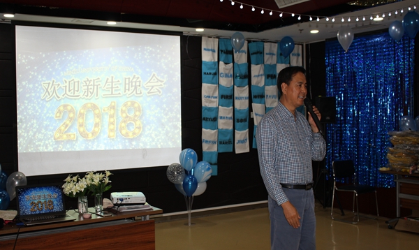 周铁海书记为本次晚会致辞,周书记在发言中首先介绍了当天到场的各位老师,并表示今天是欢迎我们2018级外国本科生的晚会,我们向今年新入学的所有国际学生本科生表示热烈的欢迎。同时他指出,今天晚上大家应该尽情展现属于自己的青春、华丽,把你们入学二人麻将