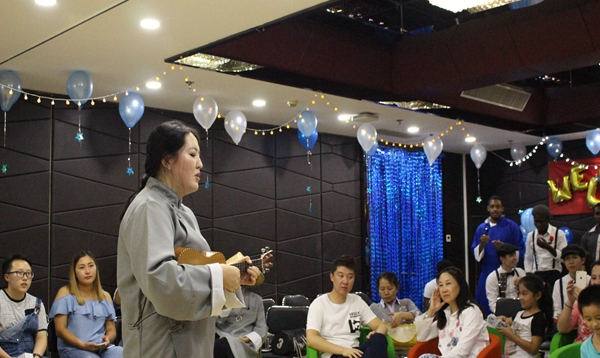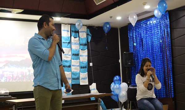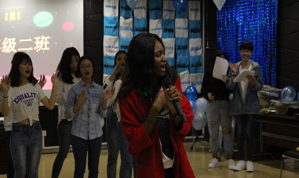 来自哈萨克斯坦的学生哈拉哈提为大家独唱了一首动听的英文歌曲,她的歌声配合着吉他弹奏,让全场师生如痴如醉。