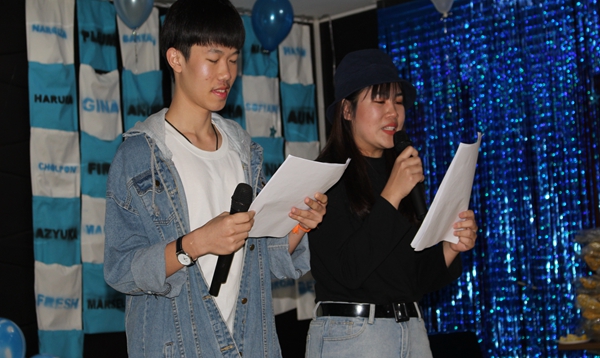 随后,两位来自泰国本科二年级的主持人李秀慧、李宏涛宣布迎新晚会正式开始。
