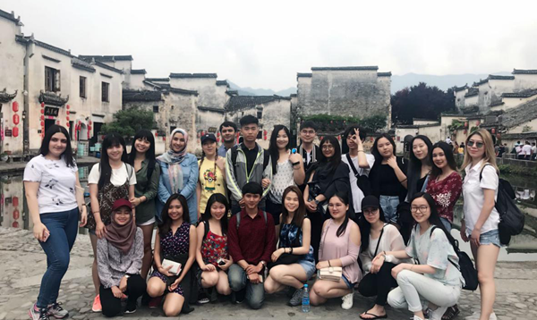 奖学金生奔赴安徽省黄山市,进行了一场“感知中国”的文化体验之旅。来自美国、韩国、泰国、缅甸、伊朗、马来西亚、亚美尼亚、印度尼西亚、哈萨克斯坦、塔吉克斯坦国家的24名国际学生参与了此次活动。在四天时间里游览了徽州古城、黄山、西递宏村、棠樾牌坊群、鲍家花园以及屯溪老街,并参观了安徽老字号胡开文墨厂,学生们亲身体验制作中国文房四宝——徽墨,感受中国民俗之美,通过体验世界文化遗产、动手实践等形式深入了解中国文化,感受中华文化魅力。