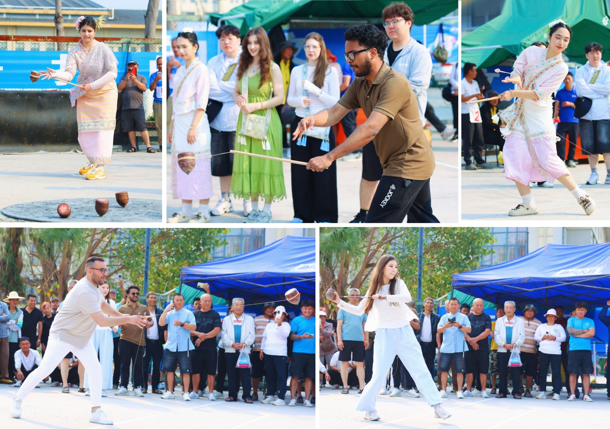 被誉为“陀螺之乡”的景谷,其“打陀螺”运动于2021年入选第五批国家级非物质文化遗产代表性项目。留学生们身着各国特色服饰参加了热烈隆重的开幕式和陀螺友谊赛,在旋转的陀螺间切磋技艺、增进友谊,感受这项承载千年民族记忆的传统体育魅力。
