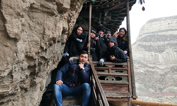接着,学生们抵达旅程的第二站——恒山“悬空寺”。恒山悬空寺建成于1400年前北魏后期,总长约32米,最高处距离地面78米,是中国仅存的佛、道、儒三教合一的独特寺庙。面对着堪称世界一绝的悬空寺,学生们纷纷赞叹这令人惊奇的巧夺天工,悬空寺给予学生们的震撼程度也让大家一时间无法用任何语言去形容。此次悬空寺之行虽然路途遥远,寒风刺骨,但这一切似乎并没有影响到学生们登寺之心,在寺上,学生们相互帮助,上下团结一致,使得彼此间的友情不断升温。