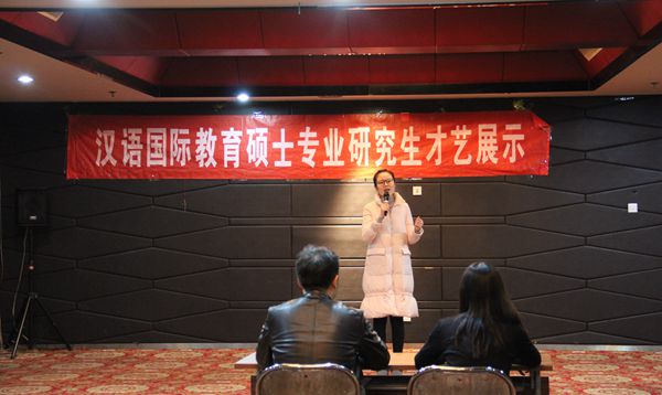 2017年12月4日上午9点,声乐才艺展示在东门留学生公寓二楼举行,共有十五位同学参加,多才多艺的汉教硕士们展示了不同曲风的中国歌曲,比如《青春舞曲》《忆江南》《打起手鼓唱起歌》等等。优美的旋律,动人的声音,让在场的评委和同学们领略到不同民族的风采。