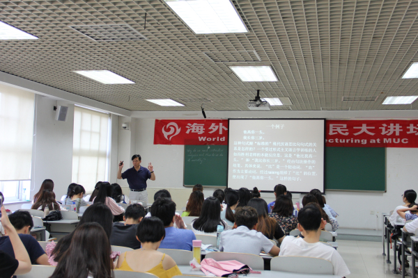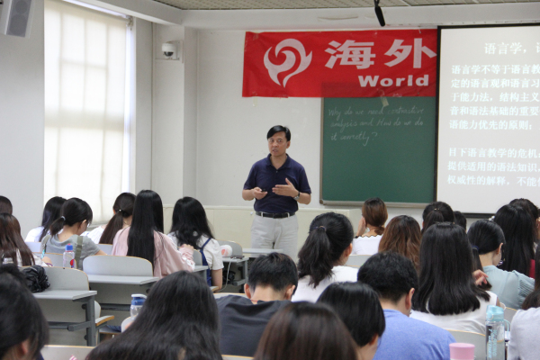 邀请,在我校文华楼做了一场名为“汉语作为二语之语法及其教学”的讲座。2017级全体汉语国际教育硕士参加了本次讲座。
