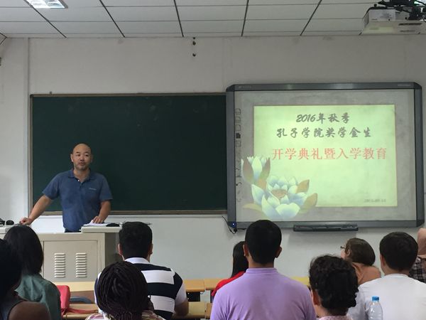 在传播中国文化中的意义、作用的了解。最后,李锷副院长重点地提示了在校学习生活期间应该注意的一些事项,希望同学们能注意人身和财产安全,提高防范意识,遇到解决不了的问题,多找老师商量。他同时希望同学们积极与其他国家留学生和中国各民族学生交朋友,从而学到更多的文化。随后,陈力老师讲述了关于奖学金生年度评审、签证、保险以及近期工作安排和注意事项做了详细地说明。陈老师还非常体贴地介绍了二人麻将