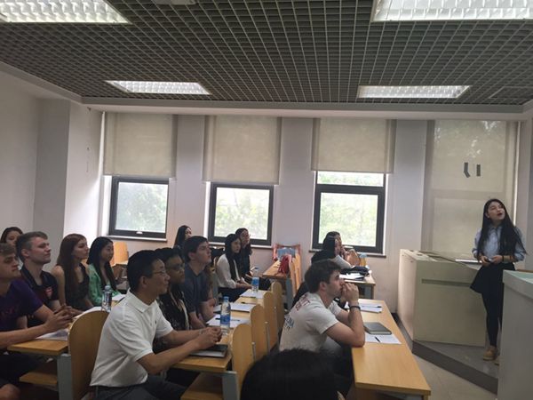 的办学特色。同学们认真倾听理解。之后,孙旭彤为同学们介绍了项目期间同学们的课程设置和课堂要求。随后,各位语伴和每一位项目的同学都进行了简单地自我介绍,气氛融洽,每一位同学都确定了心仪的语伴。