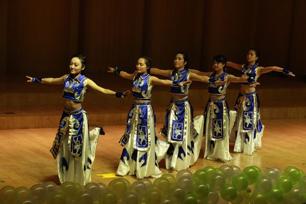 民族舞《欢庆》,其中的蒙古舞和傣族舞是同学们对暑期中华文化课程的又一总结演出,维吾尔族舞和藏族舞又体现了二人麻将