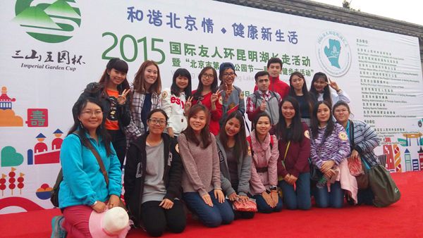 10月24日,2015“三山五园杯”国际长走在风光旖旎的颐和园畔举行。今年以“和谐北京情·健康新生活”为主题,吸引了来自68个国家和地区的驻华使馆官员、驻京外国机构工作人员及专家、留学生约800人参加。我校来自泰国、越南、缅甸、哈萨克斯坦、乌兹别克斯坦、塔吉克斯坦的23名留学生参加了此次活动。开始后,大家从文昌院起点出发向北经谐趣园,沿后山至苏州街南门向西,过界湖桥,经耕织图沿公园西墙行至西宫门,向东经京密引水渠北侧路至昆明湖东岸,经绣漪桥向北,经八方亭至文昌阁终点,全程8公里。同学们表示通过此次长走活动,亲身体会了中国古典园林文化的深邃魅力,希望以后还可以参加这样的活动。