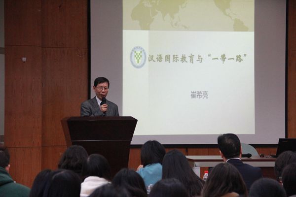 以及孔子课堂的发展形势、全球学习汉语的人数和汉语国际教育硕士专业的发展情况等。在此基础上,崔教授为在座的汉语国际教育硕士研究生分析了职业前景和发展方向等,既专业又实际,十分具有说服力。