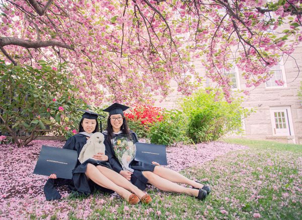 2015年5月,我和张英英参加完毕业典礼后在学校的合影