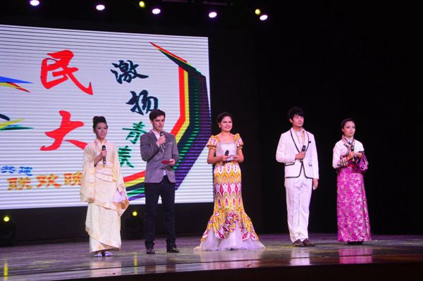 的主持人穿着各具特色的民族服饰