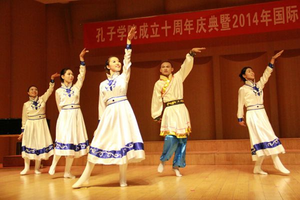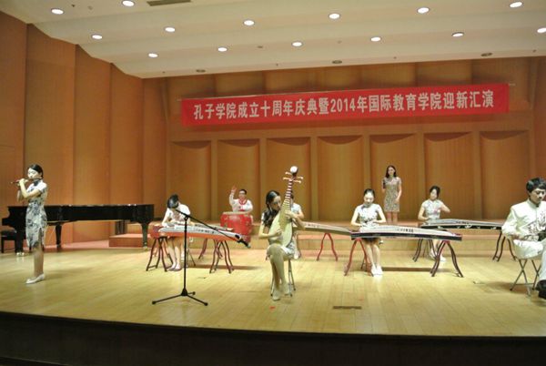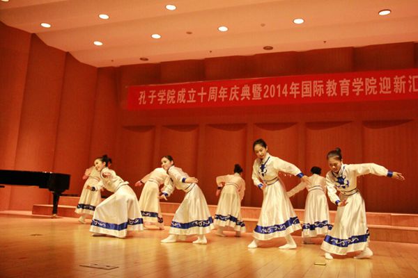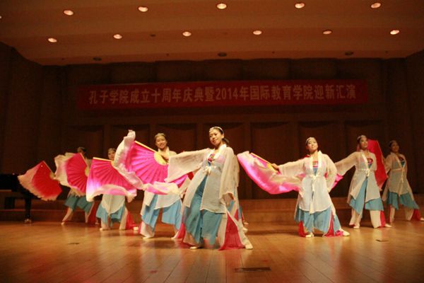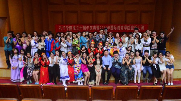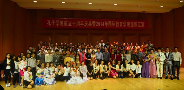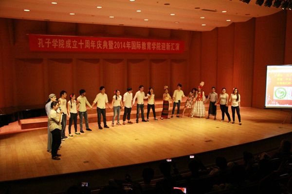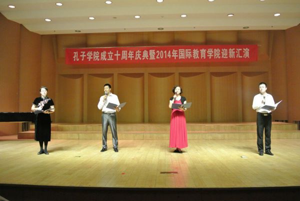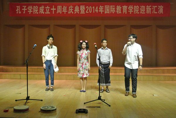 奖学金生也登上了舞台,为我们带来了幽默风趣的“三句半”,表达了他们对民大的感谢以及对学习汉语地浓厚兴趣。之后,田艳老师和陈作宏老师协两位13级硕士生为我们带来了精彩的配乐诗朗诵“透过历史的眼眸”, 热情洋溢和深情真挚地朗诵感动了在座的每一位老师、同学,为晚会的圆满举办增添了浓墨重彩的一笔。