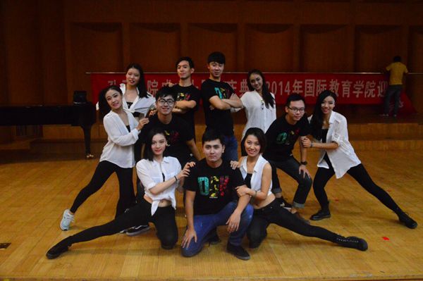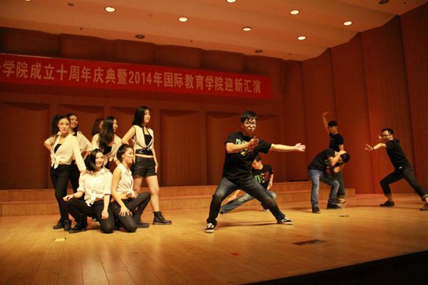 的国际化特色,表达了二人麻将学子走出中国走向世界的强烈愿望。晚会的最后,14级新生的舞蹈串烧“小苹果”出乎所有观众的意料,同学们将民族韵律操与流行歌曲很好地融合在一起,共同演绎了这首流行歌曲,清新脱俗,既体现了新生的青春活力,有很好地展现了二人麻将