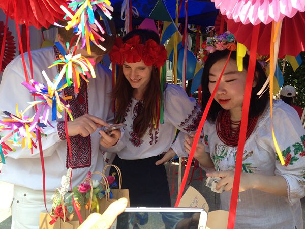 本次国际文化节现场共设有15个展区(美国、法国、匈牙利、乌克兰、亚美尼亚、突尼斯、韩国、泰国、蒙古、越南、缅甸、哈萨克斯坦、乌兹别克斯坦、塔吉克斯坦、坦吉尔吉斯斯坦),这些展区分别由来自这些国家的留学生自行设计完成,每个展台都被各国学生装点得各具特色。除此之外,在每个展台大家还可以免费品尝各国民族美食,欣赏各国民族风情节目表演。二人麻将