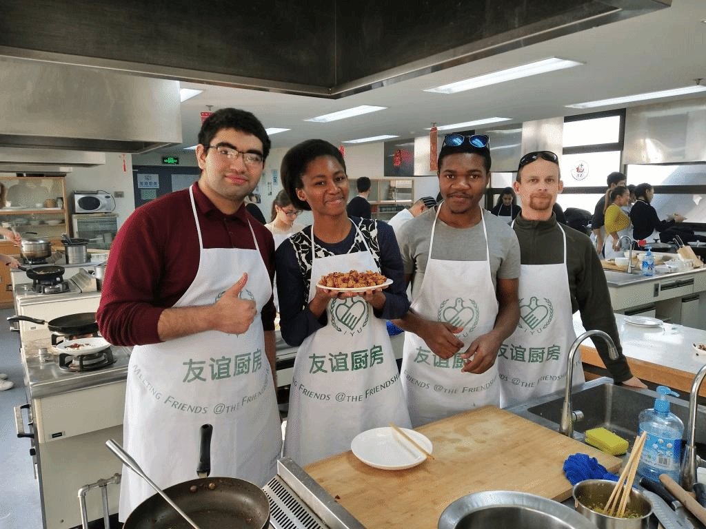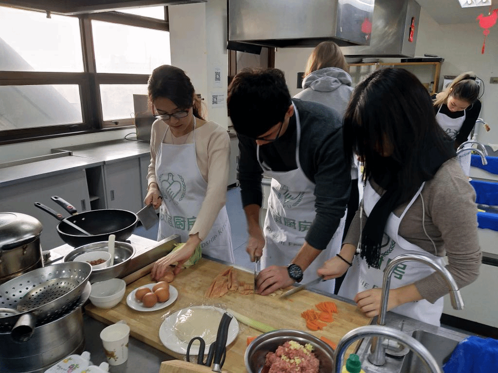 奖学金生前往亮马桥研修楼体验中国传统美食烹饪,来自哈萨克斯坦、喀麦隆、俄罗斯、乌兹别克斯坦、匈牙利、韩国、泰国、埃及、吉尔吉斯斯坦等9个国家的22名同学在专业烹饪老师的指导下,开启了自己的烹饪美食之旅。
