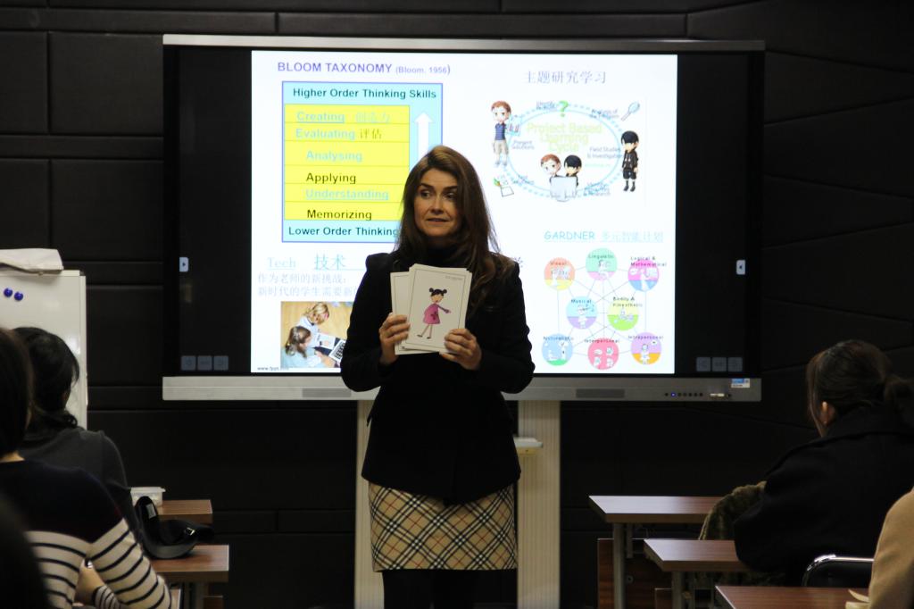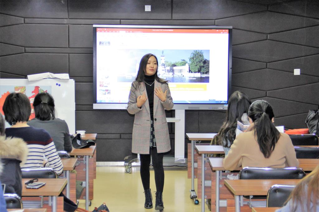 Sole老师还向同学们介绍了西班牙青少年儿童中文教学的特点,展示了“主题式教学”和“多元智能计划”指导下的课堂模拟片段,大中在中国的故事等游戏设计引人入胜,展现了中西方文化不同所带来的课堂环节的不同。最后,老师们向大家介绍了“西语国家青少年儿童对外汉语教学硕士项目”的主要内容,包括项目的课程特色、课程安排、实习状况以及报名和录取流程等等,还对同学们的诸多疑问进行了解答。