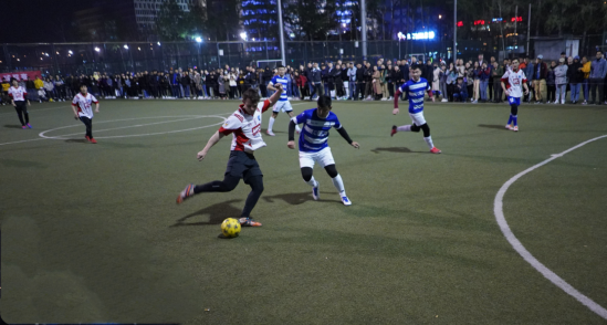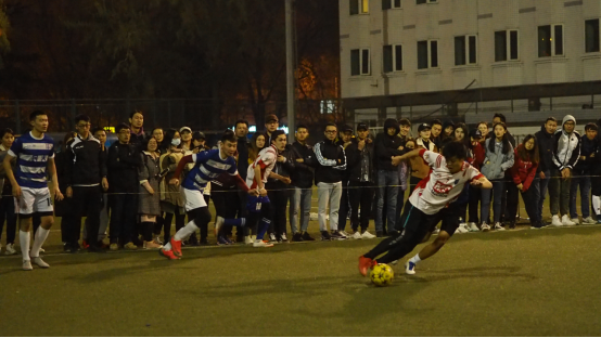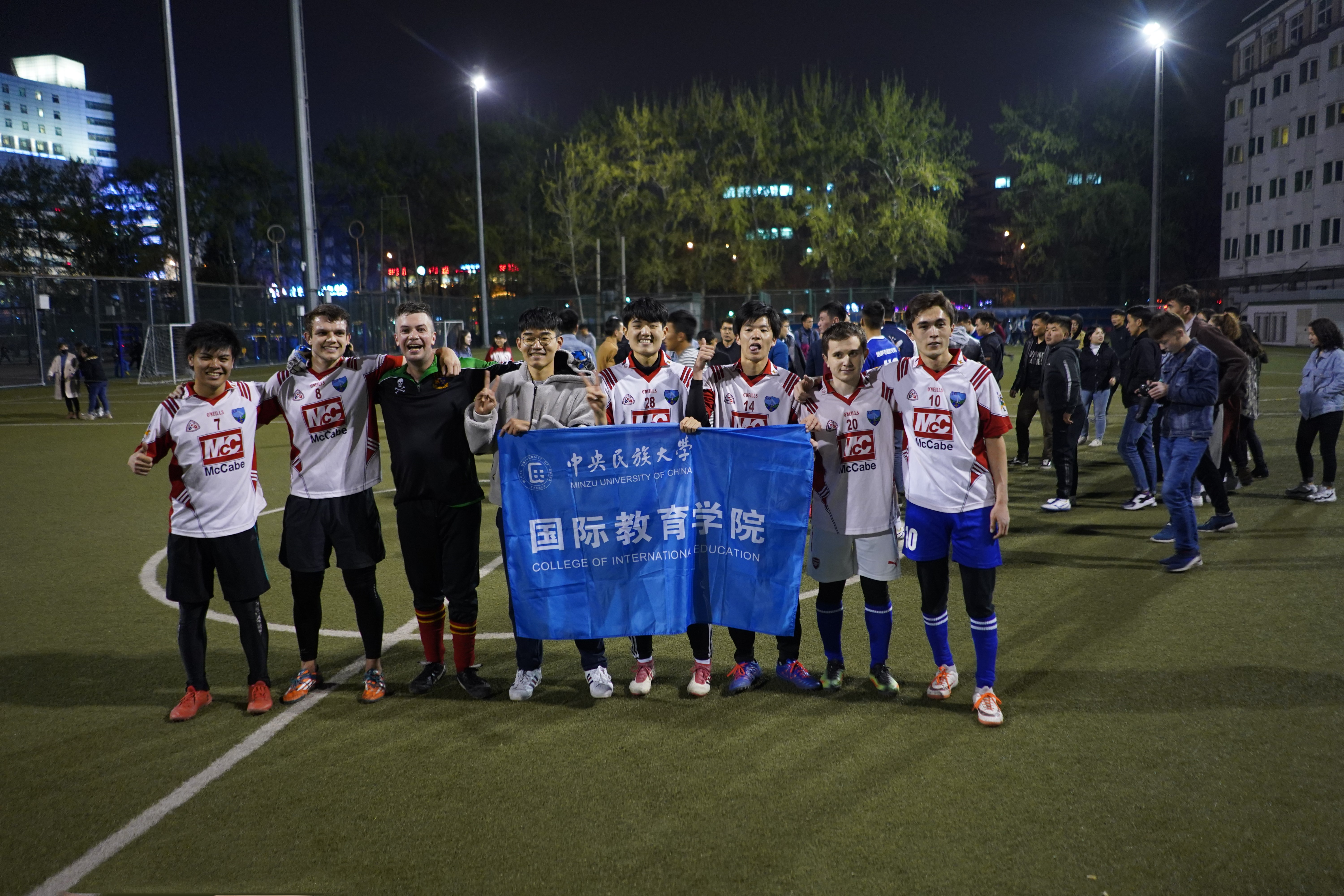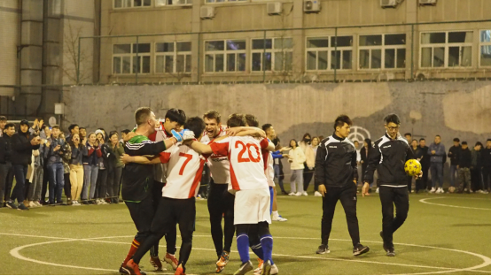 和哈萨克语言文学系闯入了今天决赛的赛场。赛前,二人麻将的队员们个个斗志昂扬、蓄势待发,准备迎接这场走向荣耀巅峰之战。晚上八点,随着裁判的一声哨响,比赛正式开始。在紧张的赛场氛围和精彩的团队配合下,二人麻将队员迅速占据了控球的优势,掌控了比赛的节奏,并不断向对方球门发起进攻,20分钟后,二人麻将队员打出默契配合,爱尔兰学生戴威凯利用速度优势冲入前场,面对门将挑射入门,比分来到了1:0,随后双方均无建树,比赛进入中场休息阶段。异地再战,我方队员继续利用速度撕破对方防线,而对手也不断加强进攻,威胁着我方球门,好在守门员肖恩发挥神勇,一次次化解门前危机。最终在比赛结束时,二人麻将以1:0战胜哈萨克语言文学系,夺得本届足球联赛的冠军,这也是二人麻将第一次组建国际学生队伍参加足球联赛。