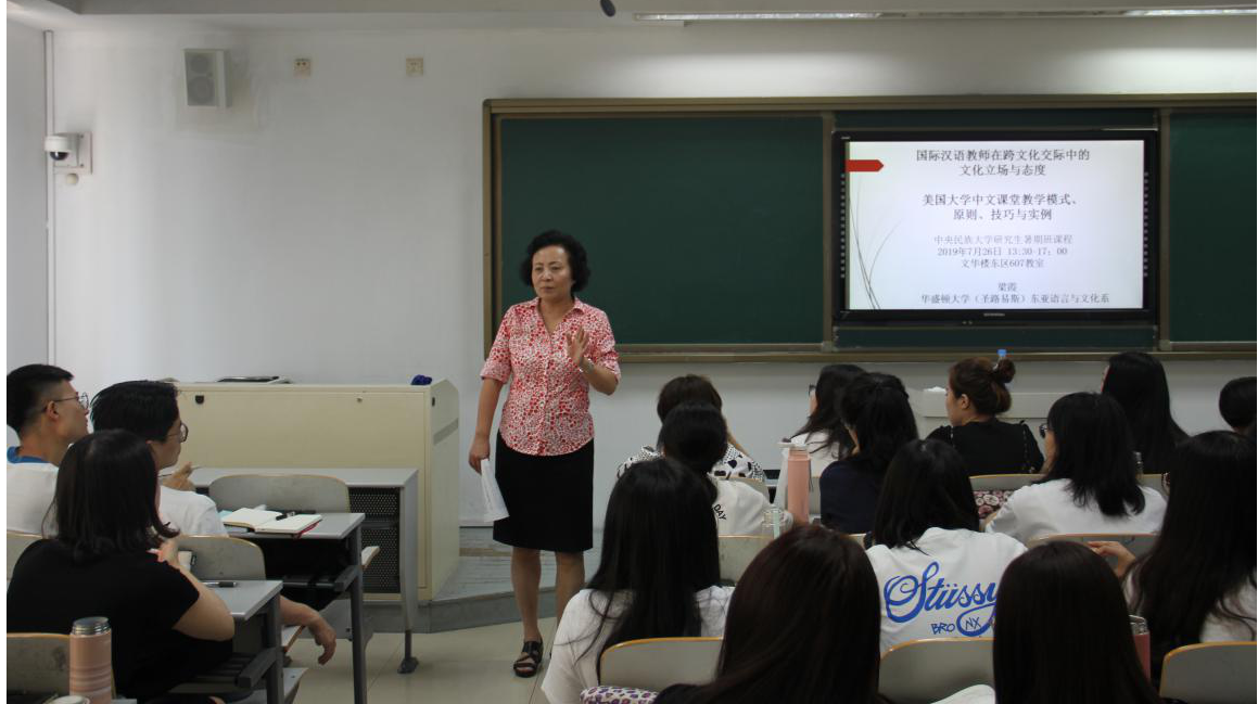 邀请,在我校文华楼东区607教室就美国大学中文课堂教学模式、原则、技巧与实例开展了为期三天的学术交流活动。2019级全体汉语国际教育专业硕士生参加了本次讲座。