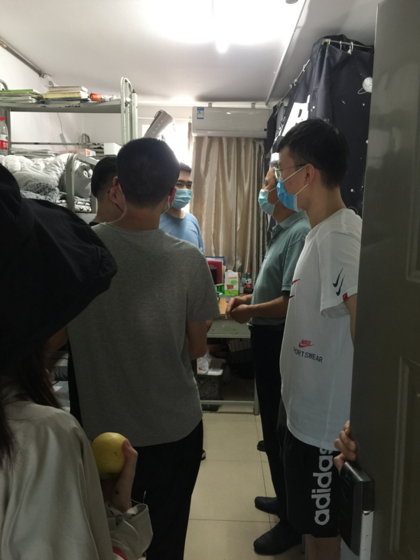 领导叮嘱各位同学,要保持宿舍开窗通风,空调温度不宜过低以防感冒,大家一定要做好个人防护,保持良好的学习生活习惯。