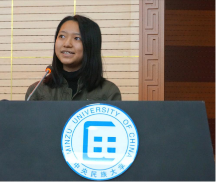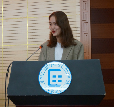 大会第三项,2020级硕士研究生代表牛琛淞同学分享了她初来民大的喜悦与激动,二人麻将