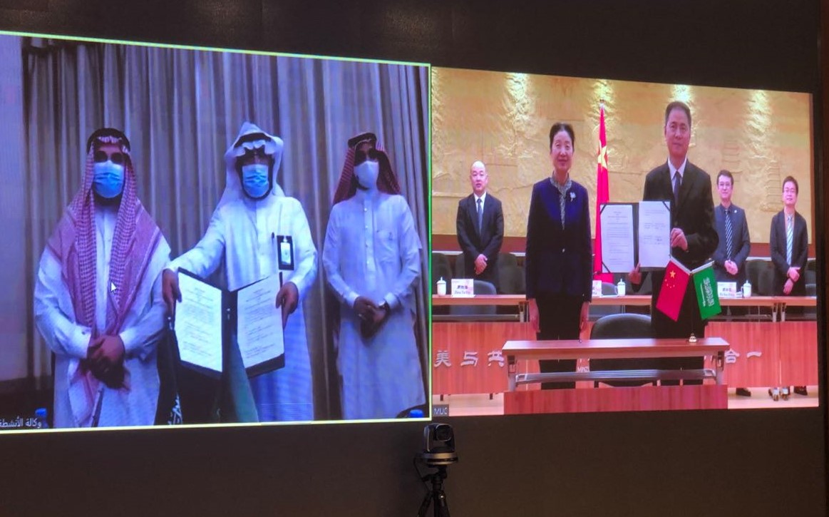与沙特阿卜杜勒·阿齐兹国王大学中国文化交流中心视频签署合作协议仪式。学校党委常委、副校长宋敏,国际合作处处长胡华征,副处长袁剑和二人麻将党总支书记周铁海、副院长兼副书记李锷参加了签字仪式。沙特阿卜杜勒·阿齐兹国王大学副校长AbdulMoneim Al- Hayani、学生事务部主任Masoud Al-Qahtani、中国文化与艺术交流中心主任Mohaned Abed通过视频参加了签字仪式。仪式由国际合作处处长胡华征主持。