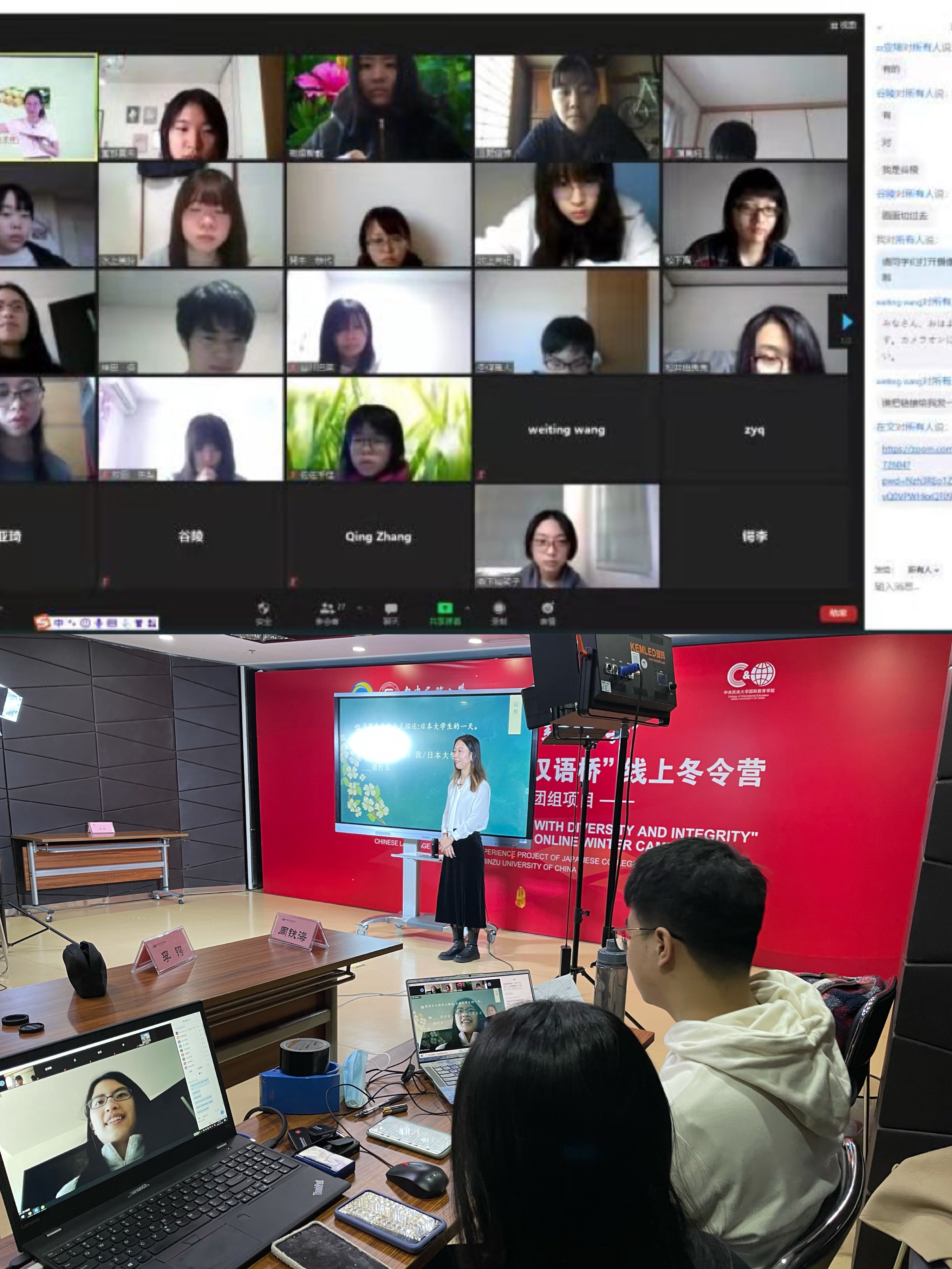 在这个特殊的时期,以一种全新的方式为学生们带来很多新的文化知识。她说:“平时我们课上没有时间讲这些中国文化。我觉得这种课程特别好,日本大学生也都非常喜欢这次的课程内容。我还要特别感谢我们的讲课老师们,尤其是对我们初级班听力口语不太好的学生,老师们不厌其烦的耐心讲解,保证让大家都能够得到锻炼,真的非常棒!让我也重拾初心,得益匪浅。千叶大学每年学习中文的学生特别多,大概有800到900人左右。但每年去中国留学的学生的人数特别少,所以我也希望通过本次线上的这种交流活动,能让更多的日本学生喜欢汉语,喜欢中国,并为将来的中日友好播下种子。希望明年我们能去二人麻将