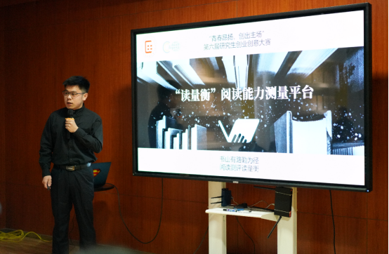20级汉语国际教育专业的硕士生孙鹏、邓雯、范天放、苑璐瑶、李伟平和王一凡。在答辩中,孙鹏向评委嘉宾介绍了“读量衡”阅读能力测量平台的项目情况:“读量衡”阅读能力测量平台是一种专业的中小学生阅读能力测量平台,旨在通过一种可靠、有效的全新测量方式来测量国内中小学生的阅读能力,平台主要面向6-18岁中小学生,通过阅读能力测评、报告反馈、智能学习等环节帮助学生增强阅读能力、提升阅读素养、发现其阅读能力的不足,为学校及学生提供配套教学指导与服务。针对其答辩,评委专家表示认可,并给出了创业指导与建议。