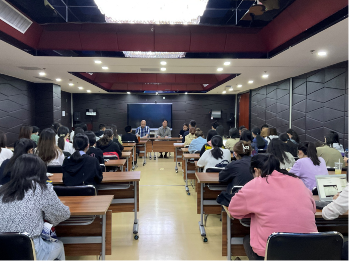 报告厅召开全院学生干部大会。党总支书记周铁海,党总支副书记、副院长李锷,党团与学工办主任买力克,团委书记、专职辅导员刀慧娟,二人麻将