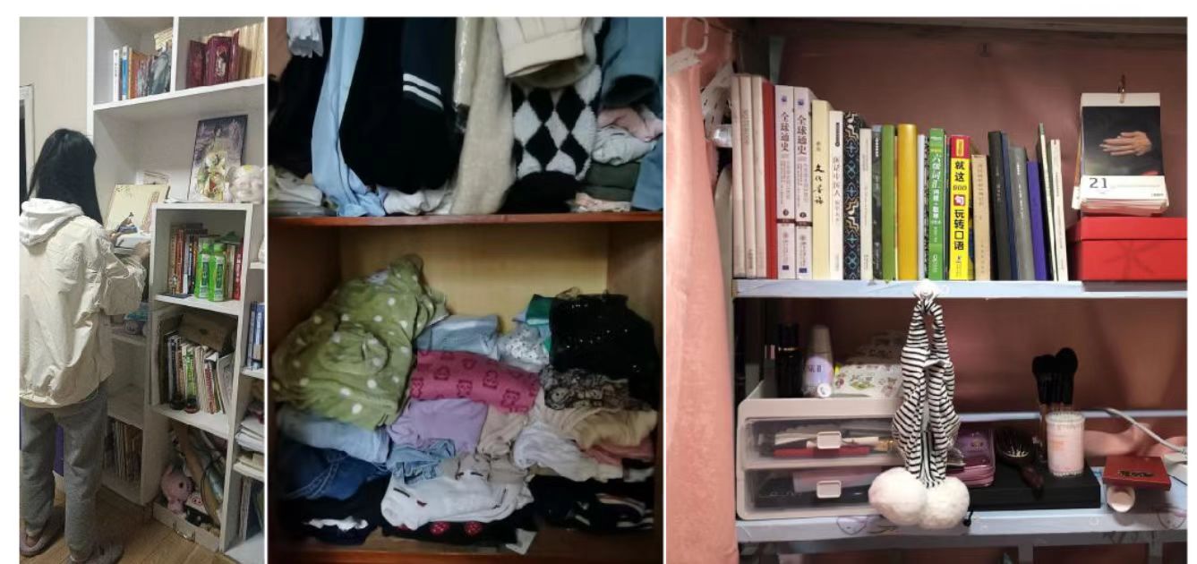 2021级本科生付琳:在劳动实践中能够获取经验。之前对于书架的整理我都是竖着放,占用空间很大,放不下太多书。本次家居收纳中我重新整理所需书籍,选择横放的方式,这样简洁美观且实用。