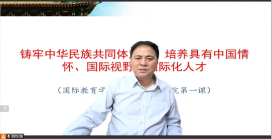 周铁海书记以“铸牢中华民族共同体意识,培养具有中国情怀、国际视野的国际化人才”为主题向大家讲授了重要一课,铸牢中华民族共同体意识是我们培养教育的重要环节,当代大学生是社会主义现代化的建设者和接班人,只有 完善“五个认同”教育,才能将中华民族共同体意识植入大学生心中,才能让我们成为合格的新时代青年。