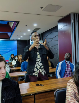 周铁海书记鼓励留学生要实现文化交流与专业学习的相互融合、相互促进,要积极发挥自身优势,践行合作共赢、共同发展、共同繁荣的家国理念,做一名中国与世界各国友好的优秀使者。讲座深入浅出,内容丰富,形式生动活泼,来自各国的同学积极踊跃发言和交流,结合自身经历分享了对丝绸之路的理解与“一带一路”建设的心得体会。
