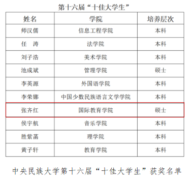 的20名同学进入决赛。党委学生工作部、校团委、教务处等部门负责人组成的专家评审组以公开评议方式,对候选人的汇报展示和事迹材料进行评审。最终,张齐红同学凭借其出色的综合表现成功入选“十佳大学生”名单。