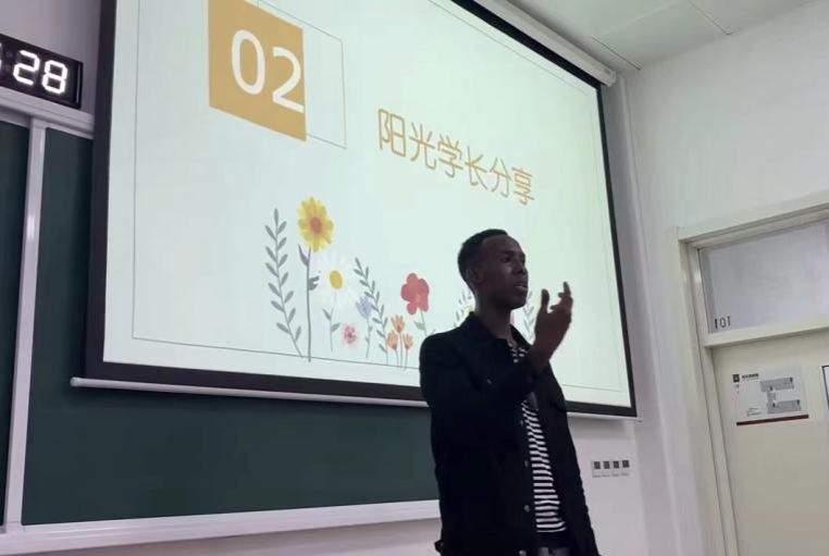 讲座也要邀请到了2021级汉教硕士张齐红及索马里学生阳光(MUSAB ABDIKADIR)两位优秀的青年代表来到现场与同学们深入交流。