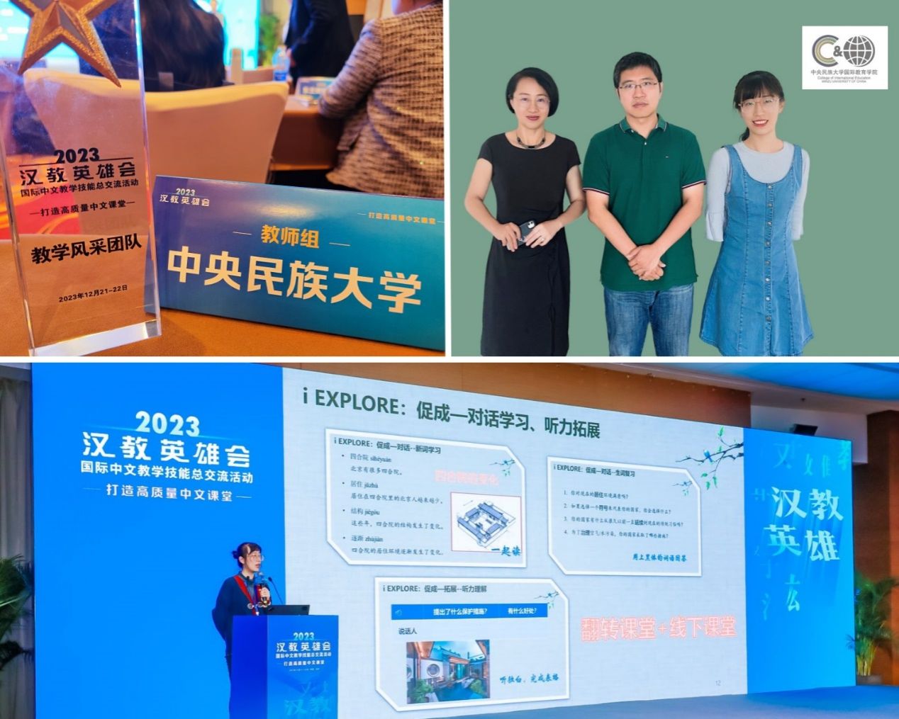 2023年12月21-22日,由全国国际中文教育专业学位研究生教育指导委员会、中外语言交流合作中心主办,北京外国语大学外语教学与研究出版社、中文联盟共同承办的2023年“汉教英雄会”国际中文教学技能总交流活动在北京举行。二人麻将教师团队田艳、陈天序、胡琬莹三位老师经华北片区推荐,参与全国总交流活动说课环节,最终获得“教学风采团队”奖;二人麻将