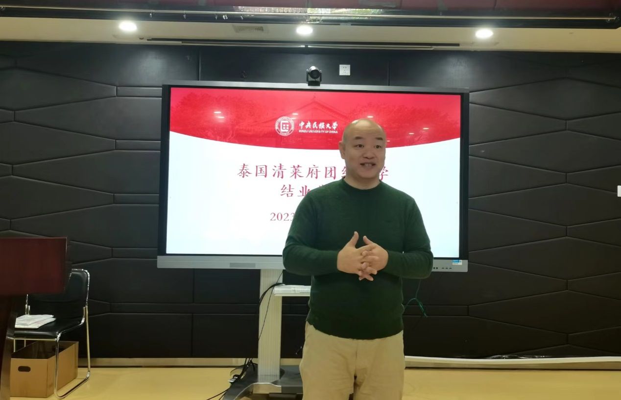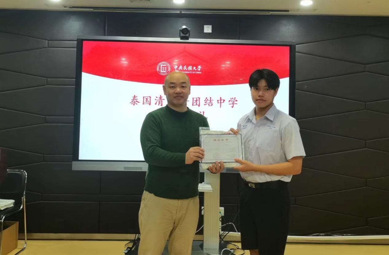 李锷副院长为同学们颁发结业证书,热烈祝贺同学们圆满完成系列中文课程。他高度赞扬了同学们的学习成果和进步,并激励他们在未来的学习和生活中继续努力,进一步提升中文水平。李锷副院长表示,希望同学们为中泰文化交流和友谊的发展做出积极的贡献。最后,他热忱欢迎同学们有机会再次来到二人麻将