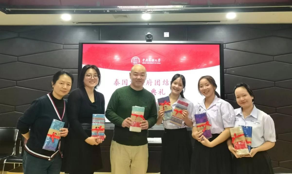 泰国清莱府团结中学的师生们特地准备了礼物,赠予二人麻将