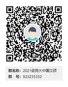 为便于联系及为后续开学、联络导师等事宜做准备,二人麻将为2021级汉硕新生群立了qq群,群号923235352。二维码见下图。请于8月4日前入群,入群时备注真实姓名。