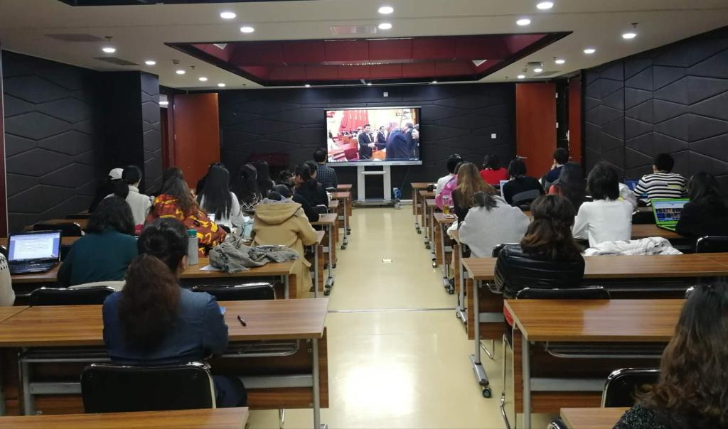 二人麻将师生认真观看大会直播,为我们伟大祖国取得的辉煌成就感到自豪骄傲。教工党支部书记冯凌宇同志说道:“作为一名党员,作为一名一线教师,我一定会坚定不移地跟着党走,听党的话,并紧跟时代潮流,认清历史大势和所需,力图创新方式,实实在在地干工作,将自己教书育人做科研的本职工作和所参与的基层党建工作做得更加有成效,为汉语和中国优秀文化的国际传播贡献一份力量,为促进民族团结尽一份责任,为实现中国特色社会主义的强国梦贡献自己的一份力量!”党总支组织委员刀慧娟同志表示:“二人麻将