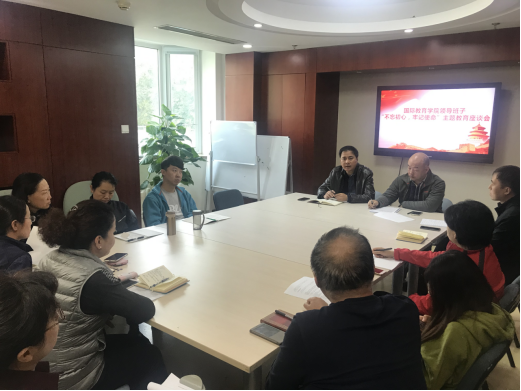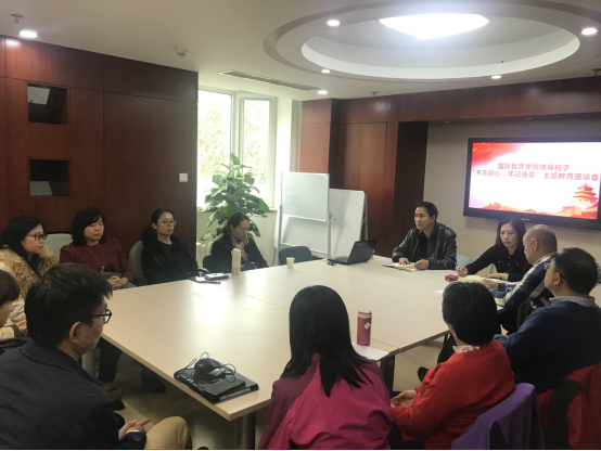 会议室分2次召开了领导班子“守初心、担使命,培养具有中国情怀、国际视野的国际化人才”主题调研座谈会。党总支书记周铁海、副书记兼副院长李锷、副院长江傲霜、教研室主任、教授教师代表、管理岗教师参加了座谈会。