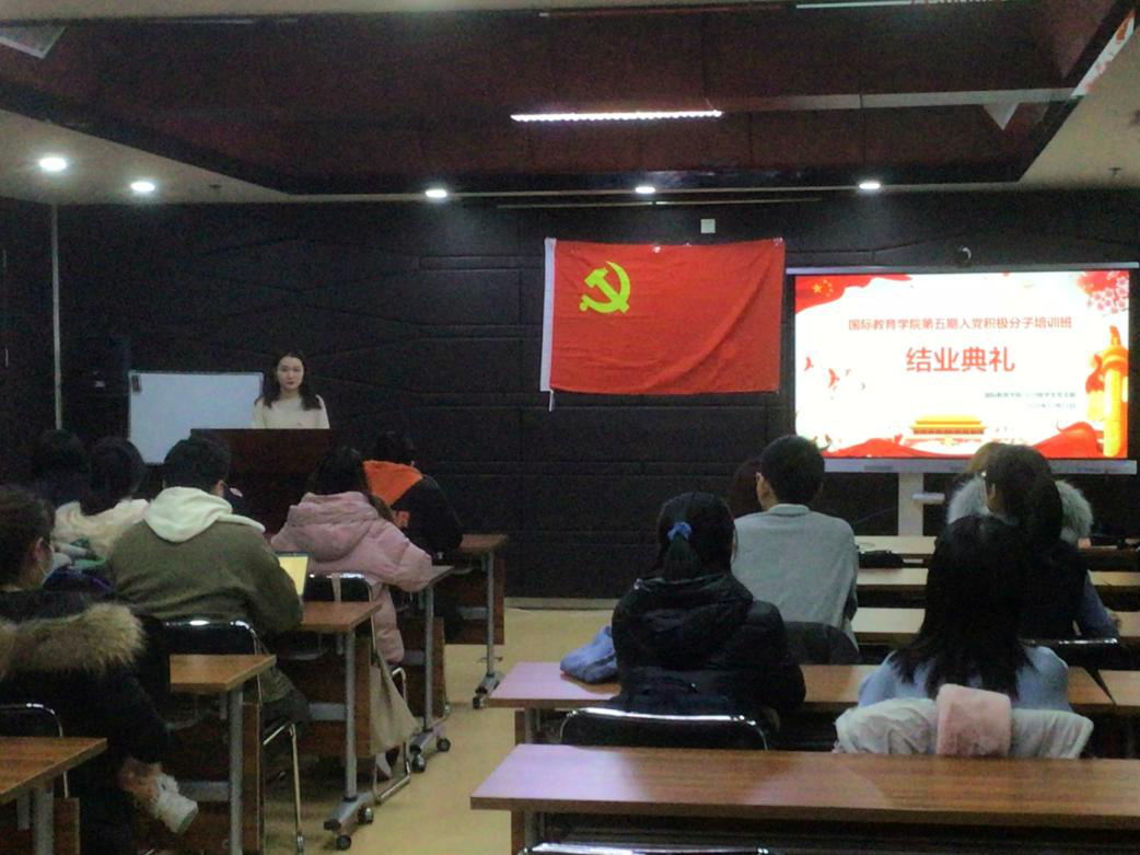 培训班学员桑珵同学代表第五期培训班顺利结业的20名入党积极分子发言。她从参加培训的体会谈起,讲述了和学员们一起学习、讨论的激动心情,总结了自己和其他学员在培训中的进步,并表明自己今后的前进方向。