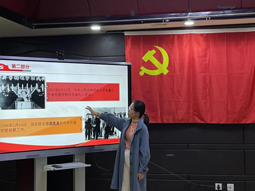 二层报告厅开展了“党员讲党课”系列学习活动,第一讲的主题是:七十年民大时光,七十年风雨兼程。党课由支部书记白照星同志主持,由支部党员廖丹同志和罗安童同志主讲,二人麻将