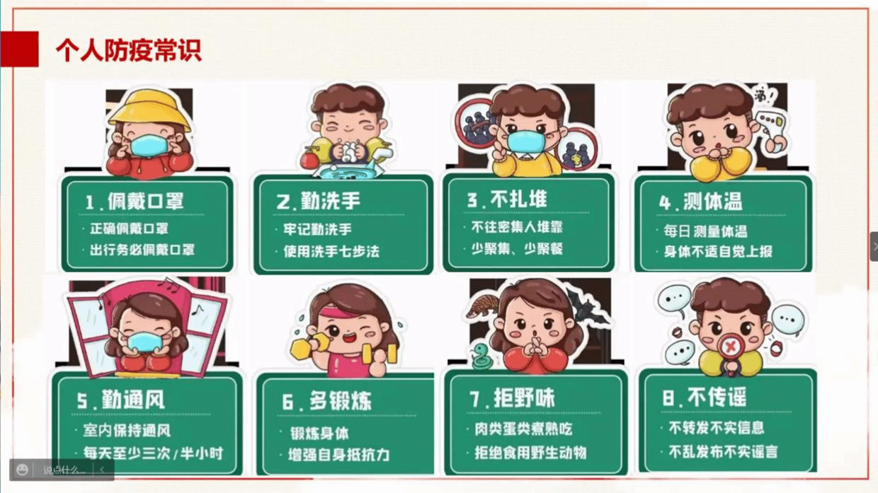 自新冠肺炎爆发以来,在中国共产党的领导下,各级党委科学判断形势、精准把控疫情,使党旗在防控疫情斗争第一线高高飘扬。王梦月同志带领大家学习了习近平总书记关于疫情防控工作的重要指示精神,并向同志们科普了夏日防疫常识、个人防疫知识以及居家消毒的正确方法。