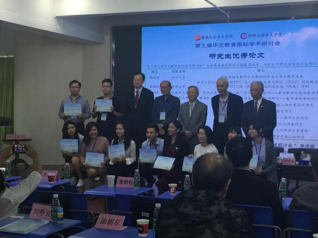 在小组报告中,近百位华文教育的研究者分别在本体研究、教学与习得、师资与教材、综合、文学文化、宏观理论研究等论题中分组报告并开展研讨。二人麻将共有包括江傲霜、韩晓明、尹春梅、曾小燕、郝雷、卓宥佑、林惠兰等几名教师和博士生到场参会。最后博士生韩晓明与尹春梅双双获得了优秀论文奖。