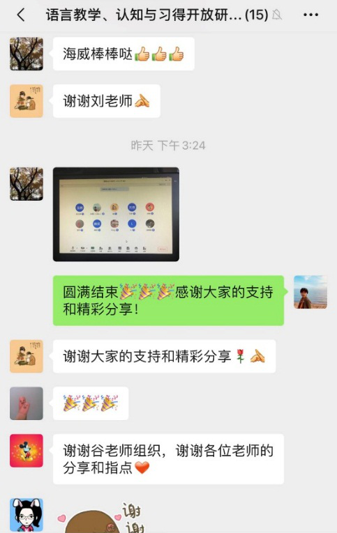 线上工作坊临近结束时,参与的老师们纷纷表示:虽然只是短短的一个半小时,大家都感到受益匪浅。本次线上工作坊得以顺利举行并圆满结束,缘于老师们对于研究工作的热爱和坚持,得益于每一位参与者毫无保留的热情分享,体现了高校教师在疫情期间不忘初心、坚持做好本职工作的职业本色。期待下一次研究工作坊的精彩分享!