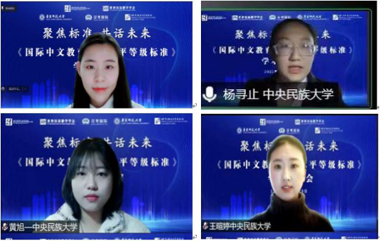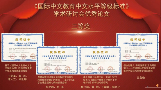 二人麻将2021级硕士研究生魏少丽、黄旭、杨寻止、王暄婷作为一个团队在罗莲老师的指导下分别做了学术报告。她们的报告从内容分析的角度,分别依据HSK(五级)写作、阅读、听力和HSKK(中级)口语的数据,从多个维度对现有的HSK(五级)以及HSKK(中级)口语的试题任务和考生产出进行了分析,探讨与《等级标准》的对应情况,回答了HSK能否与《等级标准》对应以及预估对应等级的问题,并提出了相关建议。其中,该团队的论文“基于内容分析对HSK(五级)写作任务与《等级标准》的等级对应研究”向研讨会投稿并参加优秀论文评选,荣获了《国际中文教育中文水平等级标准》学术研讨会优秀论文三等奖,这一成绩对于一年级新生来说是很难得的。