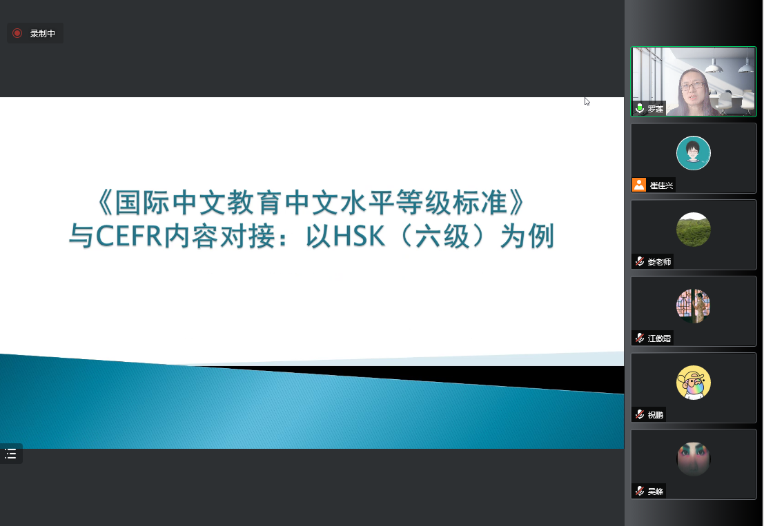 接下来,罗莲副教授以《<国际中文教育中文水平等级标准>与CEFR内容对接:以HSK(六级)为例》为题进行了主题报告。罗老师主要从内容角度,讨论了HSK(六级)是否可以与CEFR进行对接,大致对应情况如何;HSK(六级)是否可以与新标准进行对接,大致对应情况如何;以HSK(六级)作为媒介,新标准与CEFR的相关等级大致对应情况如何等三个问题。