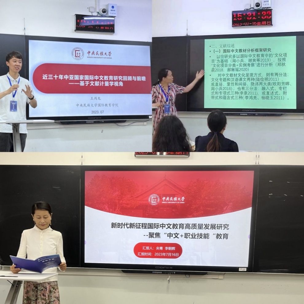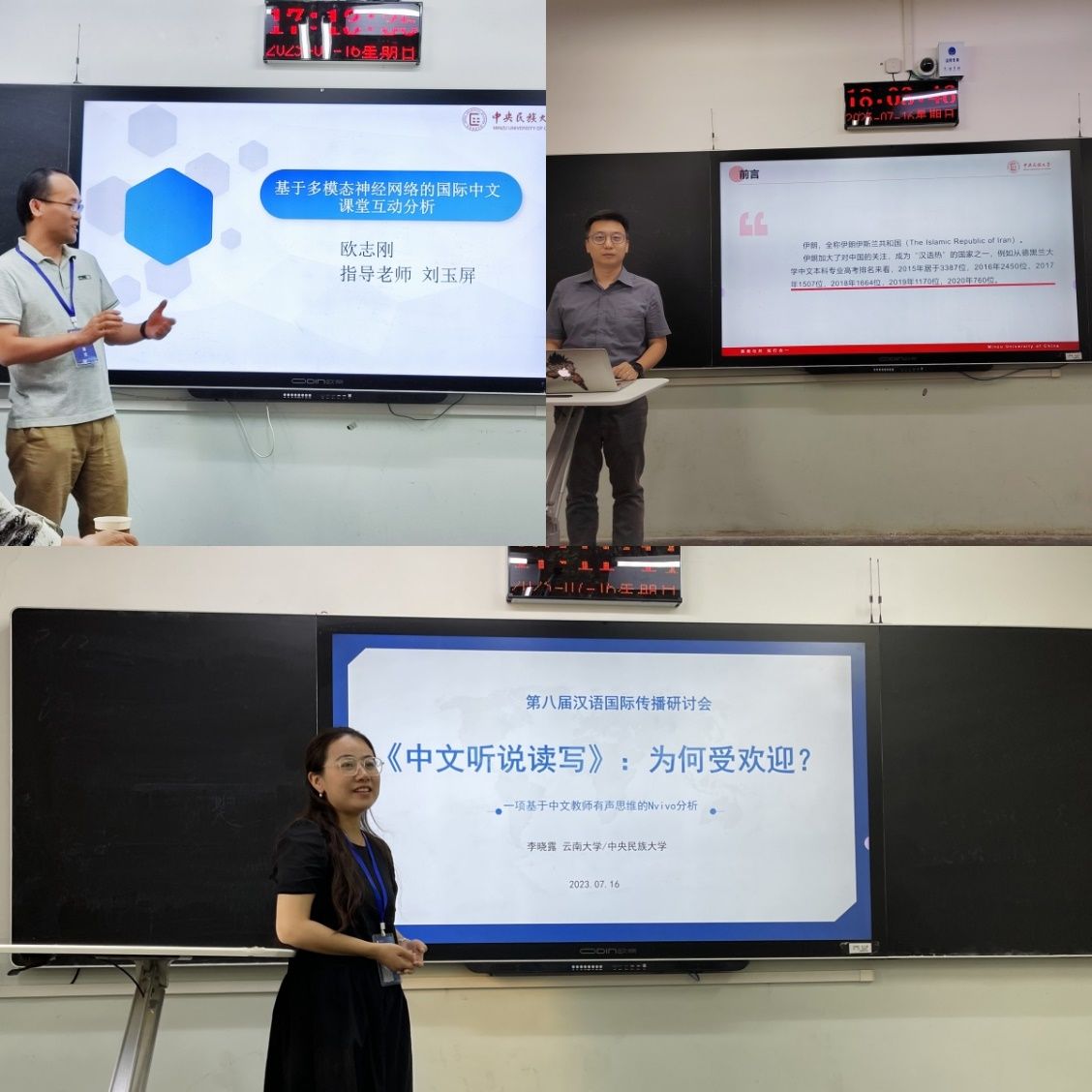 20级博士研究生李晓露的报告题目为《<中文听说读写>:为什么受欢迎?》。21级博士研究生欧志刚以《基于多模态神经网络的国际中文课堂互动分析》为题进行报告。21级博士研究生祝鹏报告了《伊朗中文教育发展》。