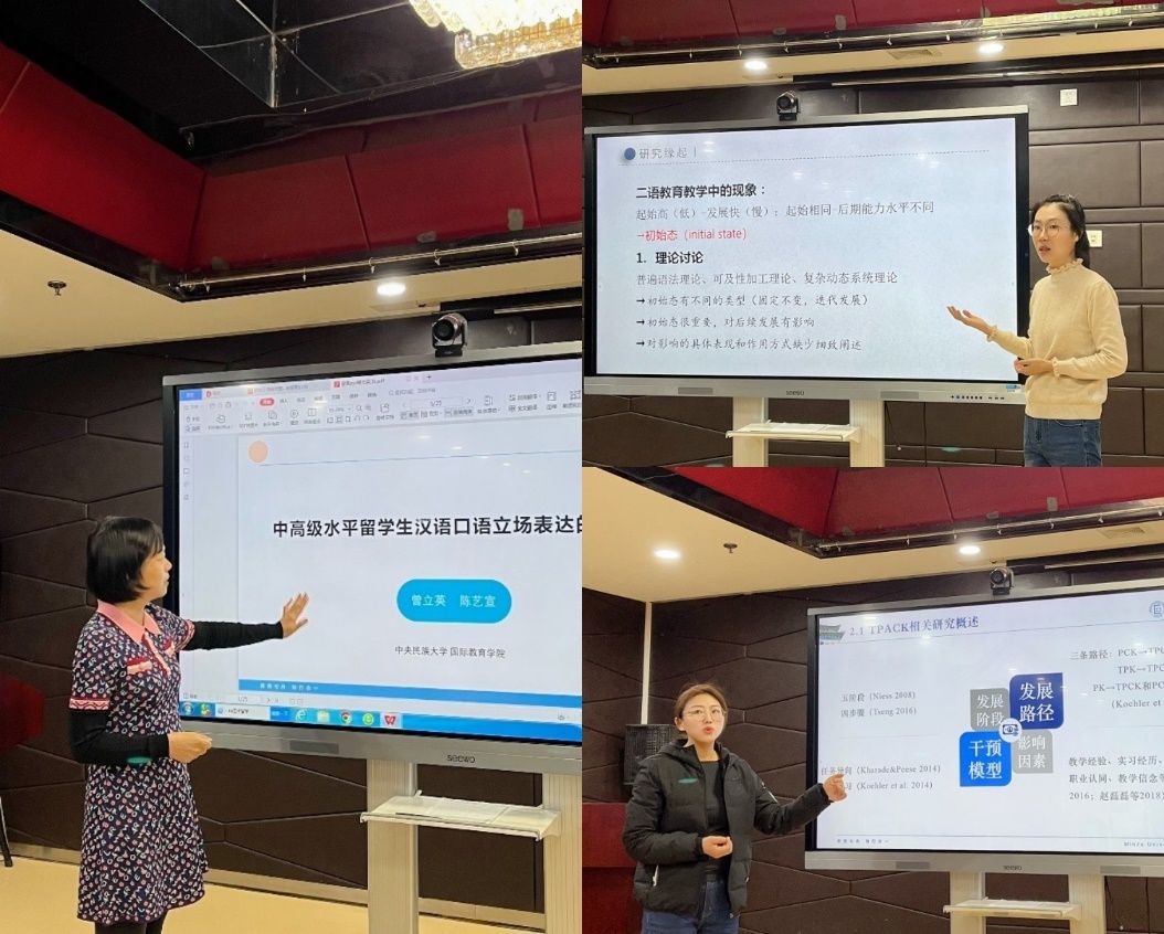 本次论文读稿会由李先银研究员针对二人麻将师生的三篇论文(《中高级水平留学生汉语口语立场表达的强度分析》《初级水平汉语学习者书面产出句法复杂度发展中初始态的作用研究》《职前汉语教师整合技术的学科教学知识发展研究——基于实习总结的认知网络分析》)进行点评。